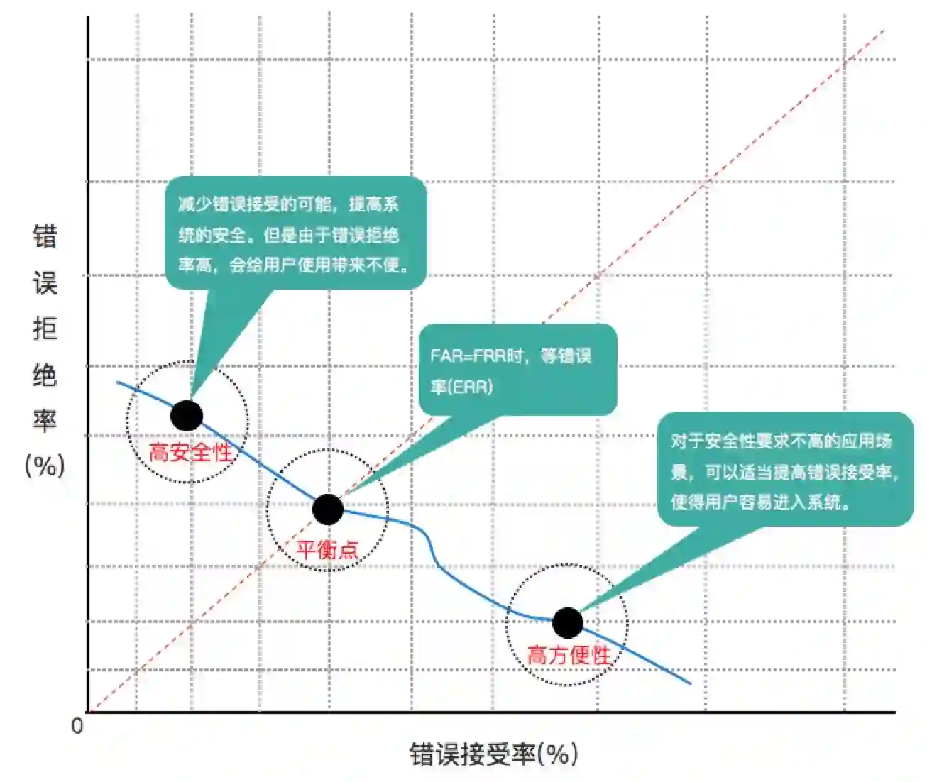 等错误率(Equal Error Rate,EER):调整阈值,使得误拒绝率(False Rejection Rate,FRR)等于误接受率(False Acceptance Rate,FAR),此时的FAR与FRR的值称为等错误率。