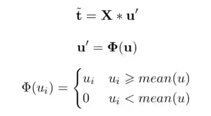 其中是优化后的目标向量表示,u' 是稀疏系数矩阵,Φ 是阶跃函数,mean(·) 代表取平均值。本文将通过最小化原始目标向量和优化目标向量来学习优化信息: