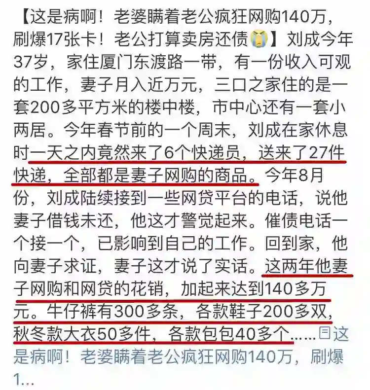 今年双十一,微博上爆出这样一条新闻:有人在两年内网购的商品竟达到140万,衣服裤子鞋子加起来一共500多件……