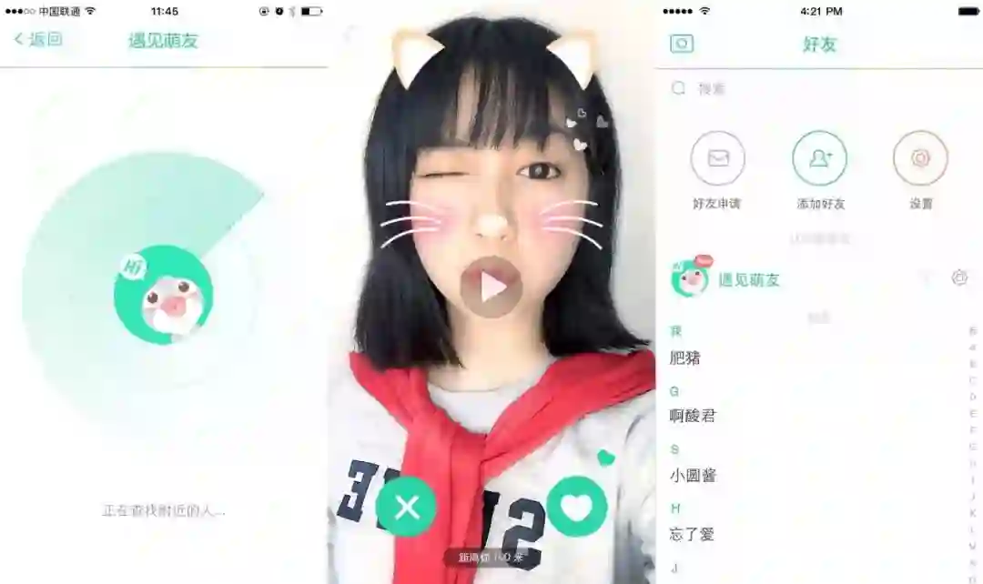 遇见萌友,一个类似Tinder的交友功能。