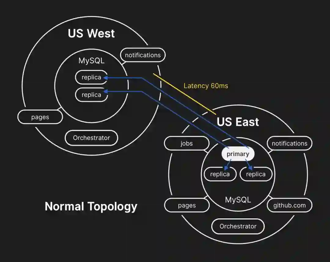 大多数面向用户的GitHub服务都在我们自己的数据中心设施上运行。数据中心的拓扑旨在提供强大且可扩展的边缘网络,该网络背后是多个区域数据中心,为我们的计算和存储工作负载提供动力。尽管物理和逻辑组件中设计了多层冗余,但站点之间仍然可能无法在一段时间内相互通信。