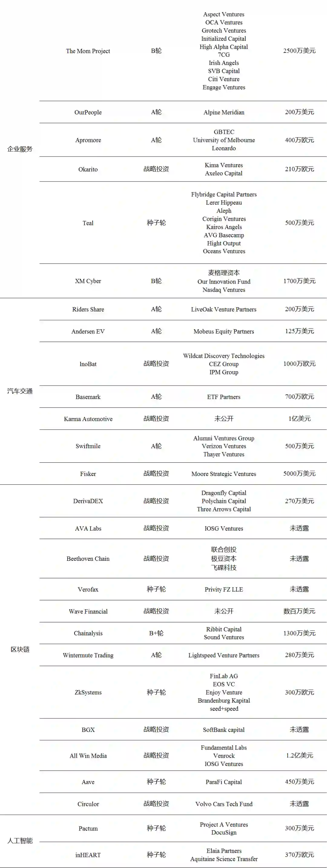 本周披露海外融资事件涉及