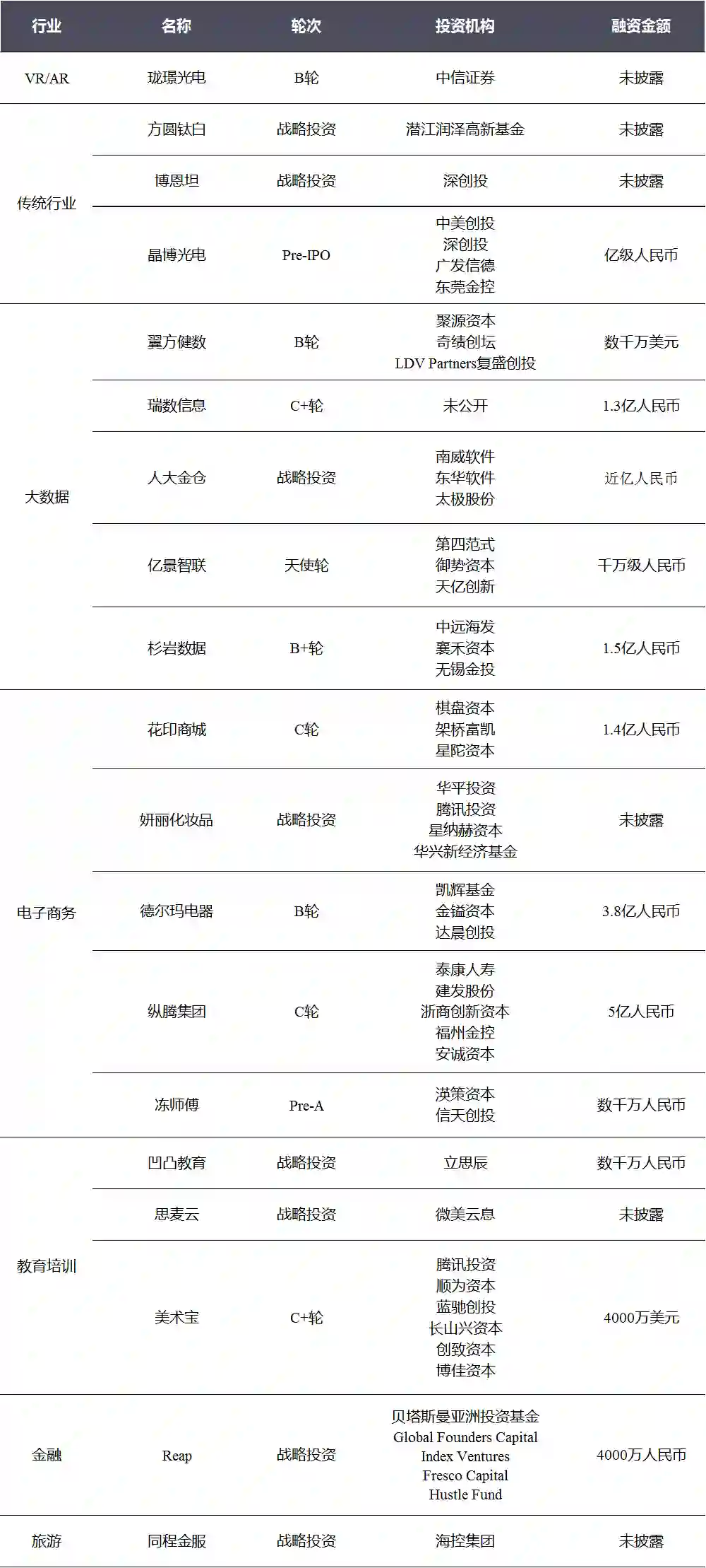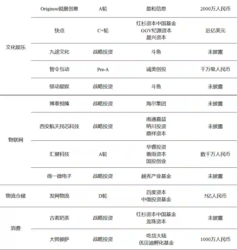 本周披露国内融资事件涉及