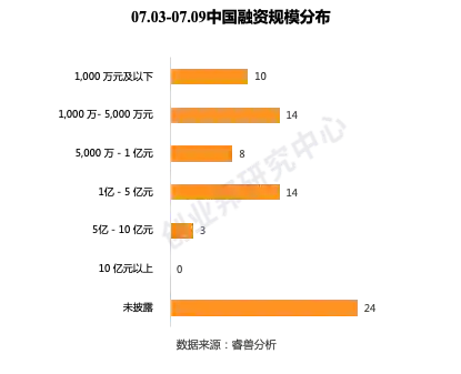 本周睿兽分析监测国内融资事件共计73起,并购事件3起。