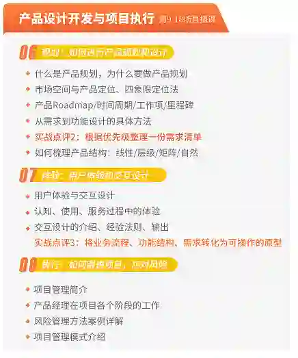 他们不仅拥有多年产品实战经验,而且经历过大厂上亿项目,在课程中能够毫无保留地,把他们多年沉淀下来,且依然实用的产品方法论传授给大家。