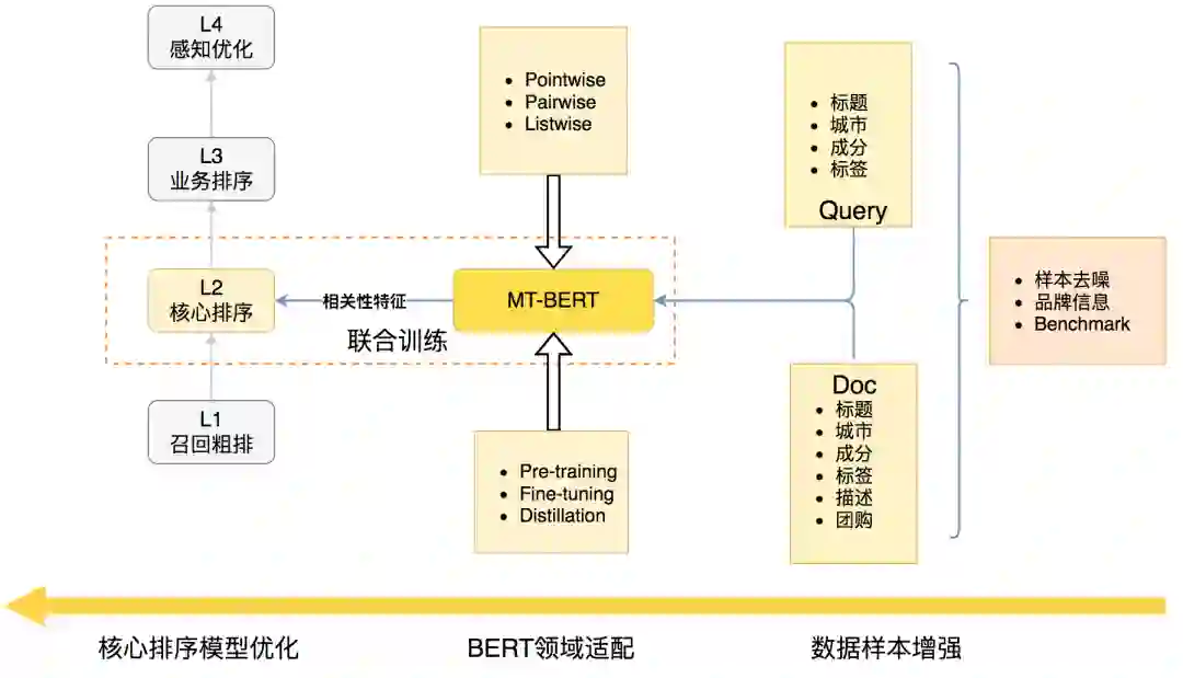 本文总结了搜索与NLP算法团队基于BERT在美团搜索核心排序落地的探索过程和实践经验,包括数据增强、模型优化和工程实践。在样本数据上,我们结合了美团搜索业务领域知识,基于弱监督点击日志构建了高质量的训练样本;针对美团搜索多模态特点,在预训练和Fine-tuning阶段融合图谱品类和标签等信息,弥补Query和Doc文本较短的不足,强化文本匹配效果。