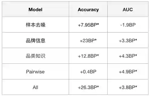 经过样本去噪和品牌样本优化后,BERT相关性模型在Benchmark上的Accuracy提升23BP,相应地L2排序排序模型离线AUC提升17.2BP。