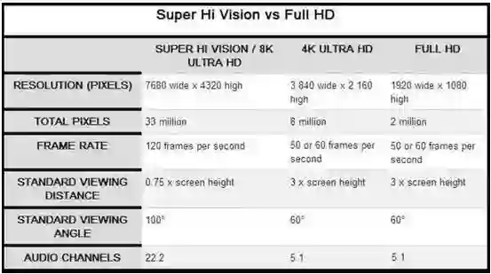 表面上看8K电视只是将4K电视3840×2160像素分辨率,提升到了7680×4320,提升了4倍,但这背后却需要画面帧率、标准观看距离、视角模式以及音频标准等整体技术的提升。