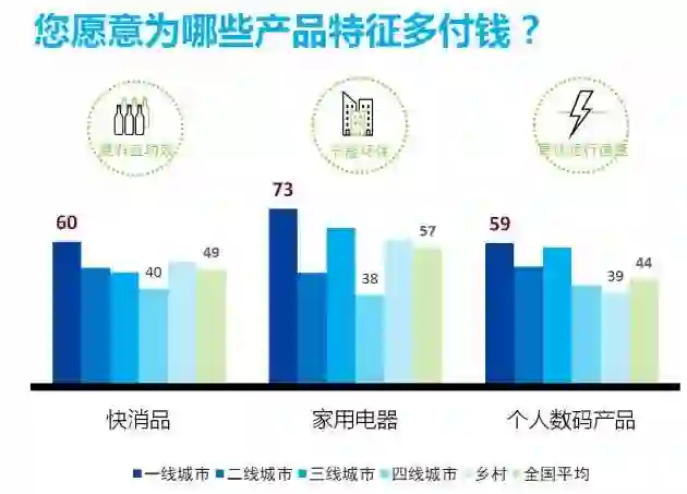 尼尔森报告显示,中国消费者越来越追求高品质的生活,其中75%的一线城市消费者愿意为电子产品的先进技术优势多付钱。