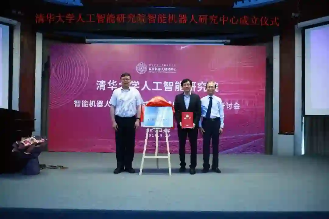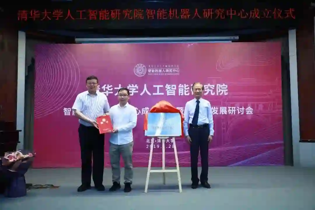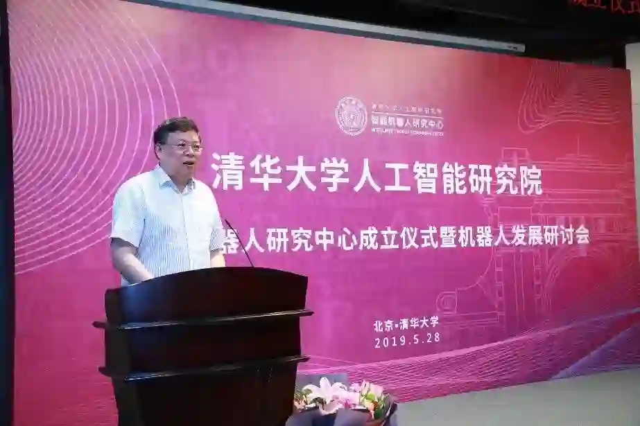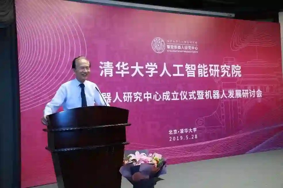 2019年5月28日午时,清华大学人工智能研究院智能机器人研究中心成立仪式在清华大学FIT楼多功能报告厅举行。清华大学副校长、清华大学人工智能研究院管委会主任尤政院士,清华大学人工智能研究院院长张钹院士出席成立仪式并共同为中心揭牌。清华大学人工智能研究院常务副院长孙茂松教授主持会议。科技部高技术中心刘进长研究员、北京航空航天大学王田苗教授、德国汉堡大学张建伟教授、中国电子学会梁靓副秘书长、清华科研院机构办甄树宁等多位嘉宾、机器人大讲堂发起人陈晓东、碧桂园企业代表朱磊、宾果机器人CEO闵海波、越疆机器人CEO刘培超、立德共创机器人服务平台(机器人大讲堂)总经理潘月等企业人士以及新华网、参考消息、人民网等多家媒体记者150多人出席开幕式。