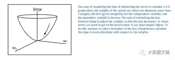 假设变量L等于那个值。可以想象,第一张训练图像的损失将非常高。现在,让我们直观地思考这个问题。我们想使得预测标签(ConvNet输出)与训练集的实际标签尽可能吻合(这意味着我们的网络预测是正确的)。为了达到这一目标,我们要尽量减少我们的损失。让我们把这一问题看作是微积分中的一个优化问题——我们想找出哪些权重最直接地导致网络的损失(或错误)。