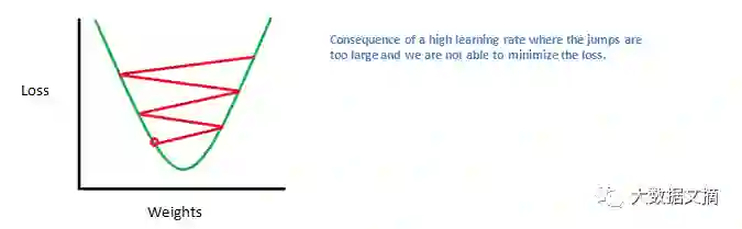 学习率(Learning Rate)是由程序员选择的参数。高学习率意味着在权重更新中采取更大的步骤,因此,该模型可能只需要较少的时间来收敛到最优的权重集上。然而,学习率过高可能导致跳跃过大而不够精确,无法收敛至最佳点。