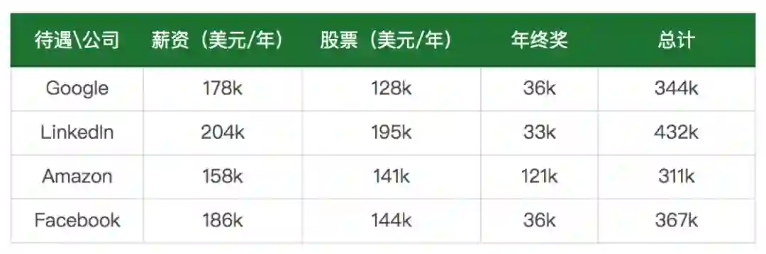 在工科毕业生的offer里,大部分起薪比较低,不超过8w。而FLAG是第一批年薪超过10w的公司,于是久而久之四大家逐渐成为大家的求职目标。到了12、13年LinkedIn家的包裹之大,甚至到了位于同行顶尖的地步。有用户甚至用了“一骑绝尘”来形容此时LinkedIn的包裹。