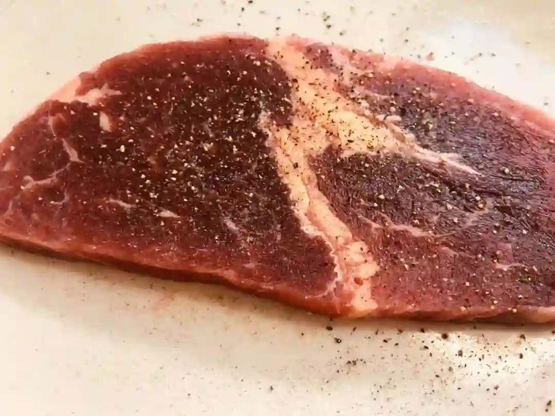 煎之前要把牛排撒上胡椒粉和盐腌制,上下两面涂抹均匀,搁置20分钟后下锅。