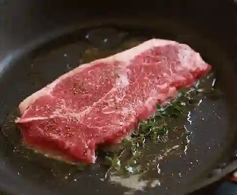煎牛排的油最好不要用黄油,很容易糊。橄榄油是最合适的,尽管它是低温油,但用来煎牛排风味最好。在煎的过程中可以加点黄油提升香味。