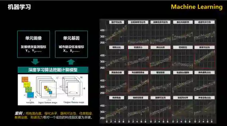 城市运行的绩效,以及城市建设标准之间是否具备联系?我们通过人工智能或者深度机器学习的方式去进行判定。我们认为城市的绩效也是给城市一个画像,城市是怎样运行的;另一方面城市的建设标准,在很大程度上是城市的建设基因。比如一个成功的科学园建设起来需要哪些建设标准,比如说用地的混合,是否商业、住宅、办公的有效混合,这种混合方式怎么样、比例怎么样,路网可达性、绿化水平、住房租金、教育设施、街道活力等等,根据这些方式去定量地判断成功的科学园的建设标准。