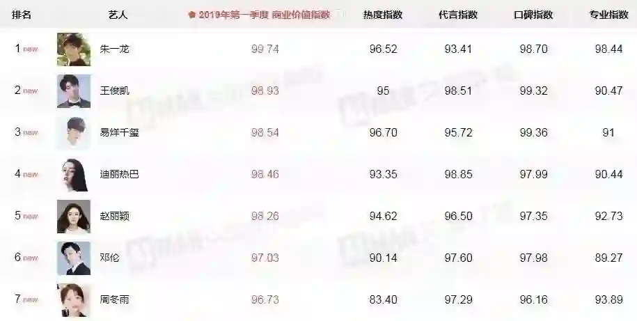 经过比较可见,朱一龙排在商业价值“榜首”是因为在播剧《知否知否应是绿肥红瘦》《我的真朋友》直接将专业指数拉高至98.44。除此以外,位居第4、第5的迪丽热巴和赵丽颖,也是以影视作品为主、鲜少重视灯牌的演员。