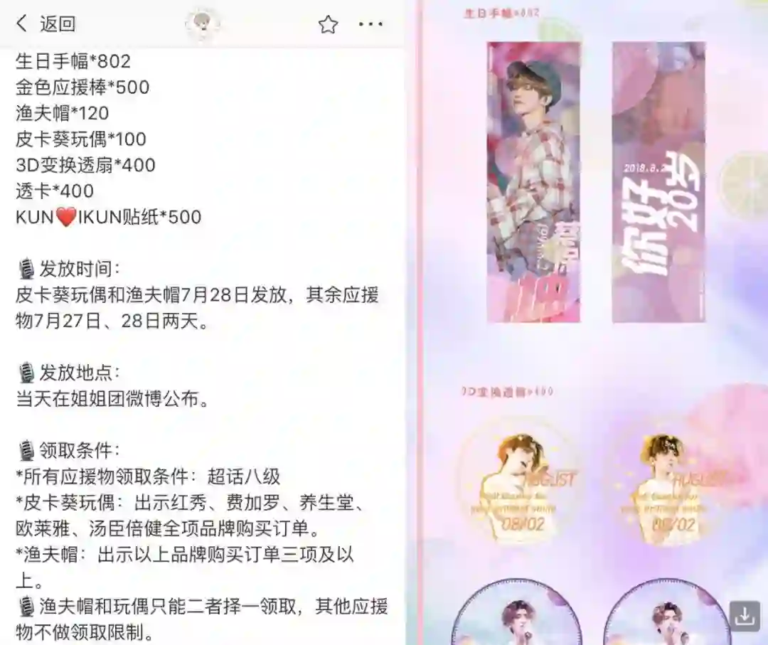 蔡徐坤粉丝站子的免费应援物及领取条件