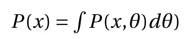 如上所述,根据贝叶斯定理,我们试图在给定一些数据x的情况下找到模型参数θ的概率。 这被称为后验,我们想计算它。 现在分子的P(θ)是我们的先验(在看到数据之前的估计)和P(x |θ)这是可能性并且显示数据分布。 这两个值都很容易计算。 分母P(x)是证据,它显示数据x是否是从模型生成的。 现在,事情有点棘手了, 我们只能通过整合所有可能的模型值来计算: