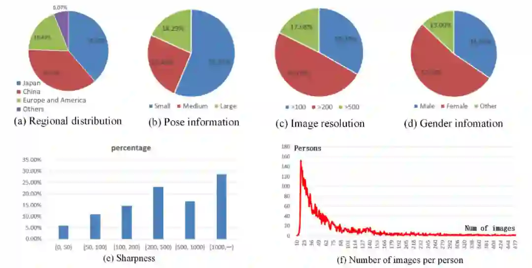 CartoonFace识别数据集是一个大规模、高质量的卡通人物身份识别数据集,如图2所示,iCartoonFace识别数据集的统计特性如下: