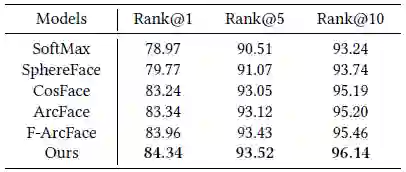 我们比较了SoftMax、SphereFace、CosFace、ArcFace、ArcFace+FL几种算法的性能如下图5所示。结果表明,
