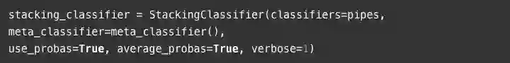 定义并配置堆叠分类器,以使用每个基本分类器提供的平均概率作为聚合函数。