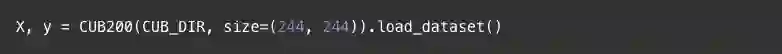 让我们从加载数据集开始,用一个效用函数(here)来加载具有指定大小的图像的数据集。当解压数据集时创建了“CUB_200_2011”文件夹,常量CUB_DIR指向该文件夹中的“image”目录。