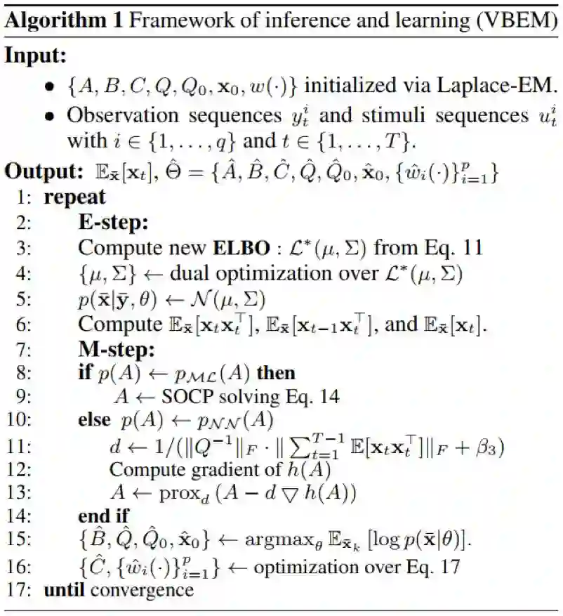 解析高维时间序列的隐含结构是人工智能领域的基本问题之一,并且已经在从社会、经济到生物科学等各种领域得到了广泛的应用(Linderman, Stock, and Adams 2014; She, So, and Chan 2015; She, Chen, and Chan 2016; So et al. 2016; Hein et al. 2016)。在这样的情况中,很多研究和理论都认为高维时间序列是某些基本的、低维的、随时间变化的相关信号的有噪声观察结果(Pfau, Pnevmatikakis, and Paninski 2013; Archer et al. 2014; Sussillo et al. 2016)。人们已经将线性动态系统(LDS)用于从被观察的多元时间序列数据中提取低维的隐含网络结构(Archer et al. 2014; Lakshmanan et al. 2015; Linderman et al. 2017),这能得到观察结果的变化性质,不管是空间上的还是时间上的。