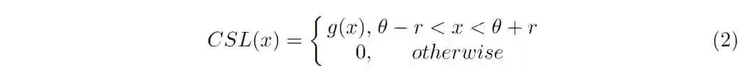 正度上述的问题(尤其是第二点),我们设计了环形平滑标签(Circular Smooth Label , CSL) ,如上图(b)所示。CSL的具体表达是如下:
