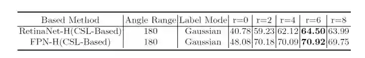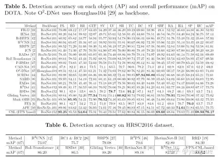 对于那些角度信息明显的类别(具有一定长宽比),角度分类应该是比较容易,相反则不太容易,比如遥感场景中的油桶。因此在比较总的精度的同时,也单独挑出了5种角度信息明显的目标来比较CSL-Based和regression-based方法。