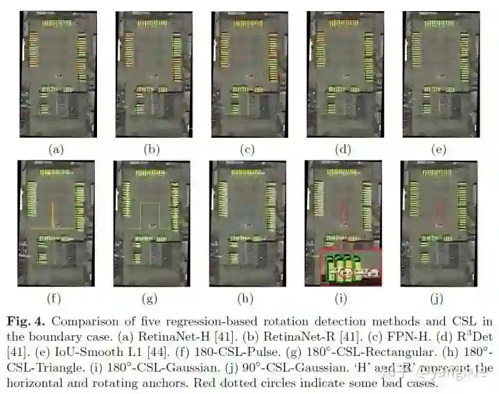 由于大长宽比的目标对于角度的变化是非常敏感的,因此研究边界问题是比较有意义的。我们希望在边界情况也能预测的比较准确,减少有预测框但是不准被当FP的情况。先给出上面三种定义方法边界问题的描述图: