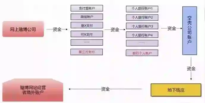 整个洗钱流程和之前我们聊到的网络赌博公司在层层监管之下,还能将34亿元资金合法转入口袋的基本流程是一致的。
