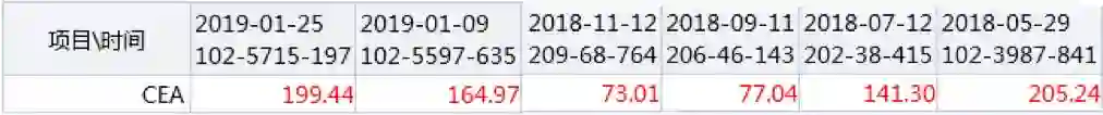 ① 右肺中叶肺癌,与2019-1-9CT相比,无明显变化。