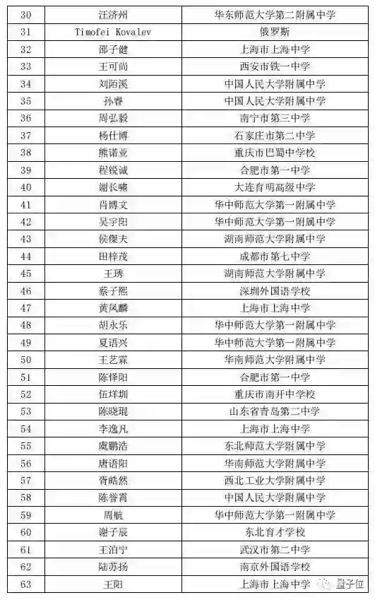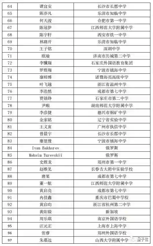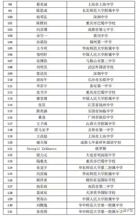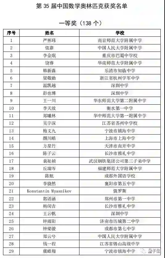 最后附第35届中国奥数竞赛金牌获奖者名单: