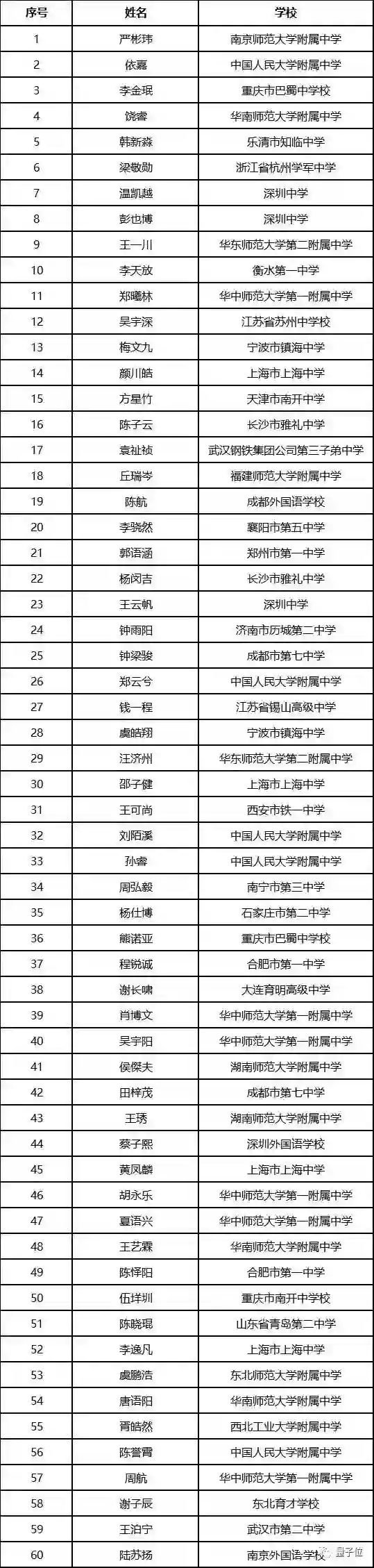 其中排名第一的是南京师范大学附属中学的女生严彬玮。