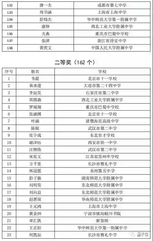 重庆巴蜀中学、长沙雅礼中学各有2人……