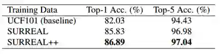旷视研究员从 Market1501 数据集提取 1500 个纹理,使用 Gul Varol 等人提出的方法合成数据集,称之为 SURREAL++;研究员分别在 SURREAL 和 SURREAL++ 上预训练用于动作识别的 Non-local 网络,并进一步在 UCF101 数据集上微调。实验结果如表 3 所示: