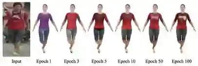 本文模型的核心思想是最大化输入图像与已生成的纹理渲染图像之间的感知相似度。研究员假定,由更好纹理渲染的人体会与输入图像有更高的相似度。由图 2 可知,随着训练的增加,渲染图像与输入图像的相似度也在增加。
