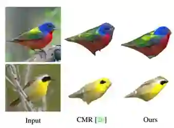 本文模型不仅可用于人体纹理生成,还可提取一般物体的纹理。旷视研究员首先在 CUB-200-2011 数据集上训练一个重识别模型,然后用其指导鸟类纹理生成。研究员把本文模型与 Angjoo Kanazawa 等人的工作(CMR)进行对比,后者使用感知损失(Perceptual Loss)作为损失函数训练纹理生成网络。最终结果如图 7 所示: