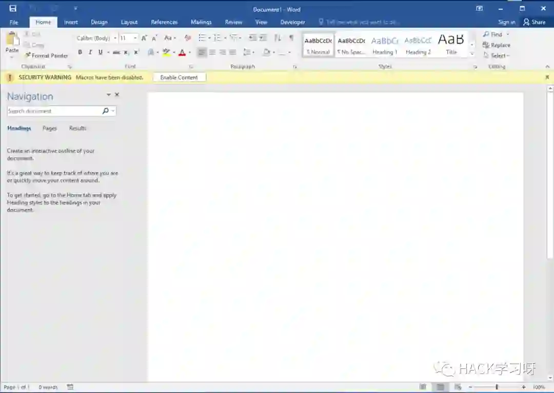 虽然有一个新的弹出窗口,但它不会影响Payload。这只是因为.docx文件不包含宏。如果用户单击“启用内容”或将宏设置为自动运行,那么我们将拿到肉鸡: