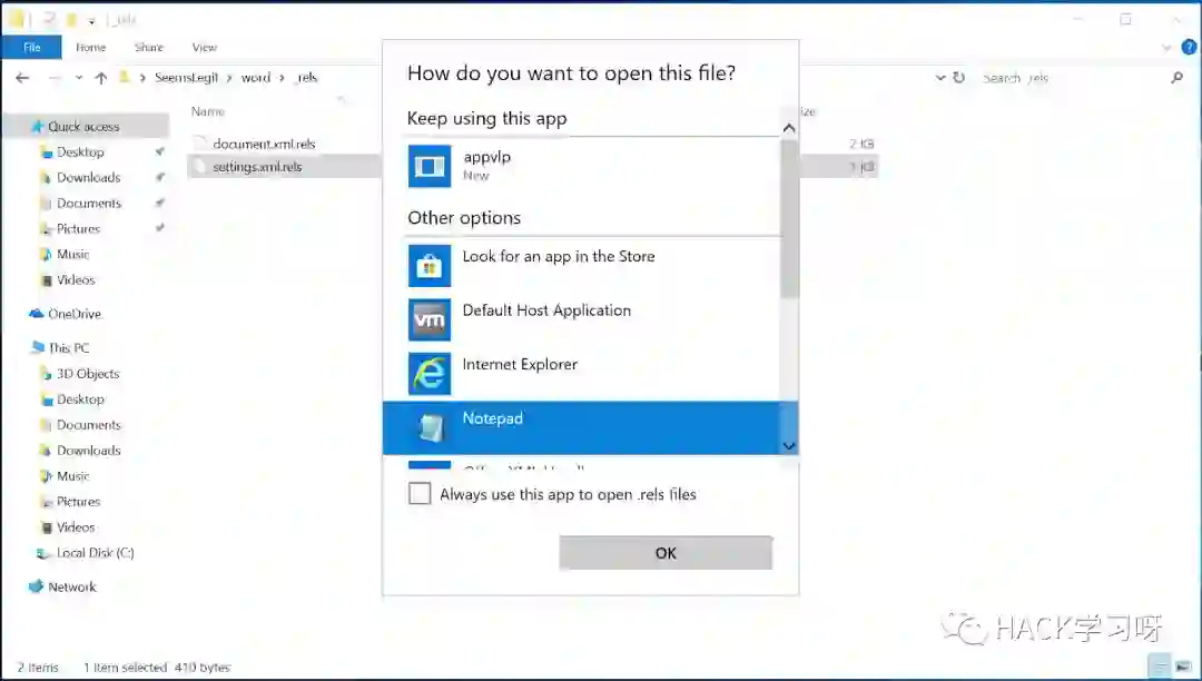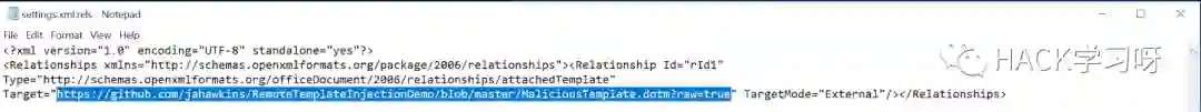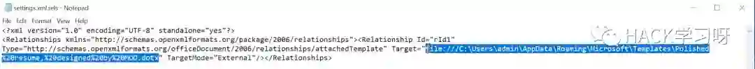 进入到.\word\_rels\文件夹并使用文本编辑器(如记事本)打开settings.xml.rels文件: