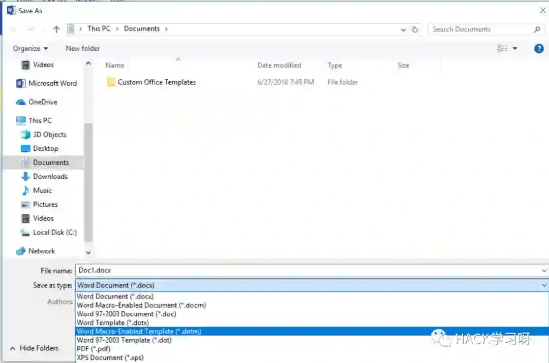 在这篇文章中,我想谈谈并展示下不久前向我看到的代码执行的方法。此方法允许用户创建一个将被加载的DOCX文档,并使用远程DOTM模板文件去执行宏。