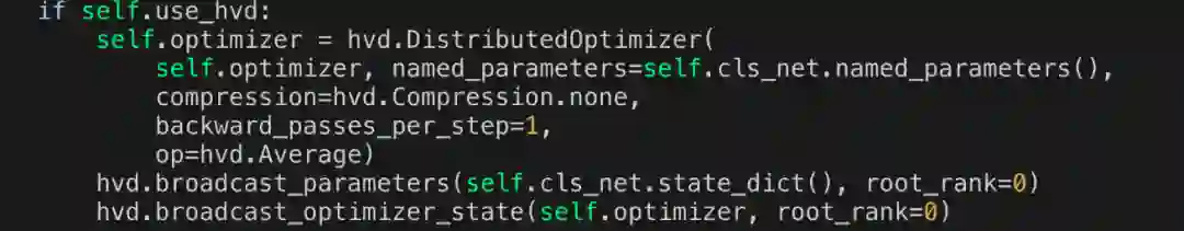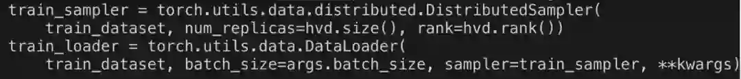 由于训练采用的是数据并行这种模式,所以需要对数据进行分布式采样。Horovod可以直接调用pytorch自带的分布式采样函数torch.utils.data.distributed.DistributedSampler,