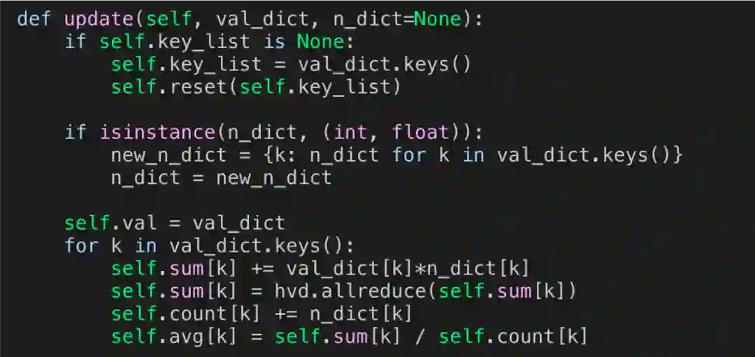 目前分布式训练框架有许多,Horovod 是 Uber 开源的一个深度学习工具,囊括了TensorFlow, Keras, PyTorch, and Apache MXNet 这些分布式训练框架。并且Horovod的梯度同步和权值同步利用基于MPI和NCCL的 all-reduce算法,而非参数服务器架构,通信效率更高。Horovod可以利用NVLINK、RDMA、GPUDirectRDMA、自动检测通信拓扑以及回退到 PCIe 和 TCP/IP 通信这些功能。同时,将已有的训练代码改成分布式训练代码,改动量少,简化分布式训练的运行和启动。基于此,微信扫一扫识物选择Horovod的分布式训练框架,在微信的训练平台gemini上进行训练。