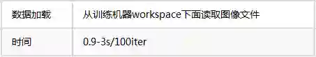 比较了几种数据传输的方法,一种是将数据切分成多个tar包存放在wfs上,在训练之前从wfs上传到各个机器;另一种是直接将原始图片数据从我们存放的机器上传到各个训练机器。时间耗时如下: