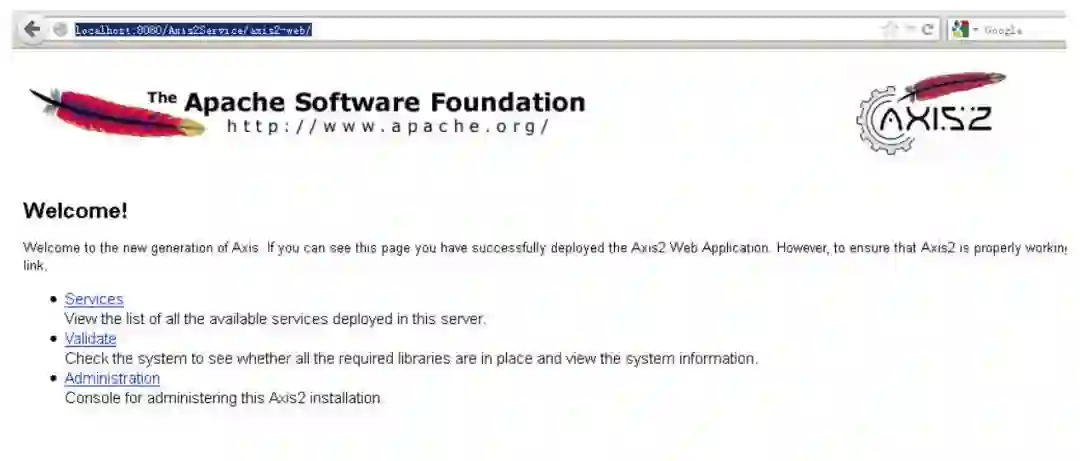 启动后访问:http://localhost:8080/Axis2Service/axis2-web/