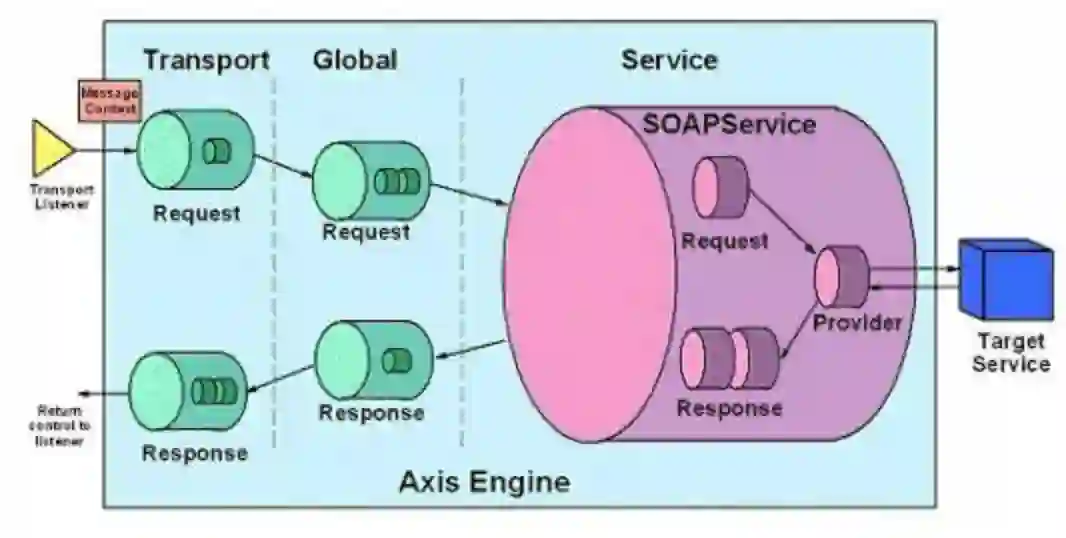 消息流子系统提供了灵活的消息传递框架,这个消息传递框架包括处理程序、链、序列化程序和反序列化程序。处理程序是一个处理请求、响应和故障流的对象。处理程序可被组合在一起成为链,而且可以使用一个灵活的部署描述符来配置这些处理程序的顺序。
