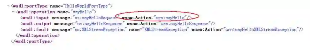 sayHello这个对外暴露的WebService方法名为: urn:sayHello