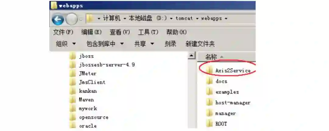 在Tomcat的webapps目录下建立一个目录叫Axis2Service的目录
