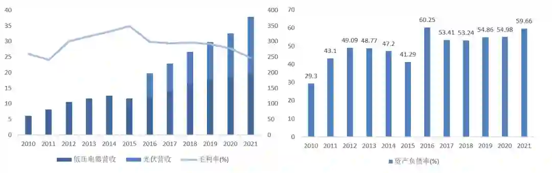 2016年,正泰新能源正式并入正泰电器的财务报表,正泰电器从此坐拥低压电器与光伏两大业务版块。从协同效应来看,低压电器业务与光伏存在互补效应,在建设光伏电站时,需要用到大量的低压电器产品。